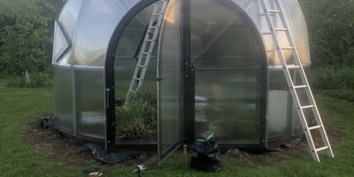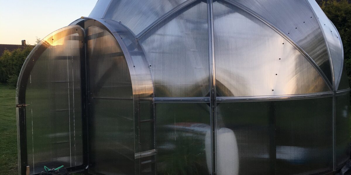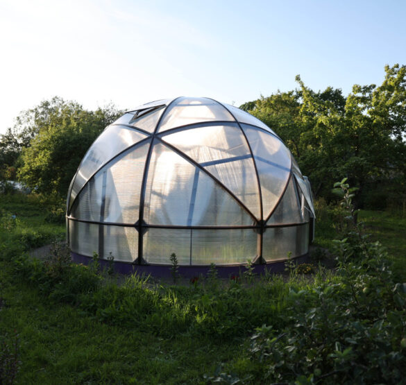 The bottom rim of the cupola is 70 cm high – the standard height of a table. Insulation and lowering in the ground of the bottom part of the cupola enables to extend the usage period. The assembly of the plywood frame with the connectors requires about 8 hours DIY.